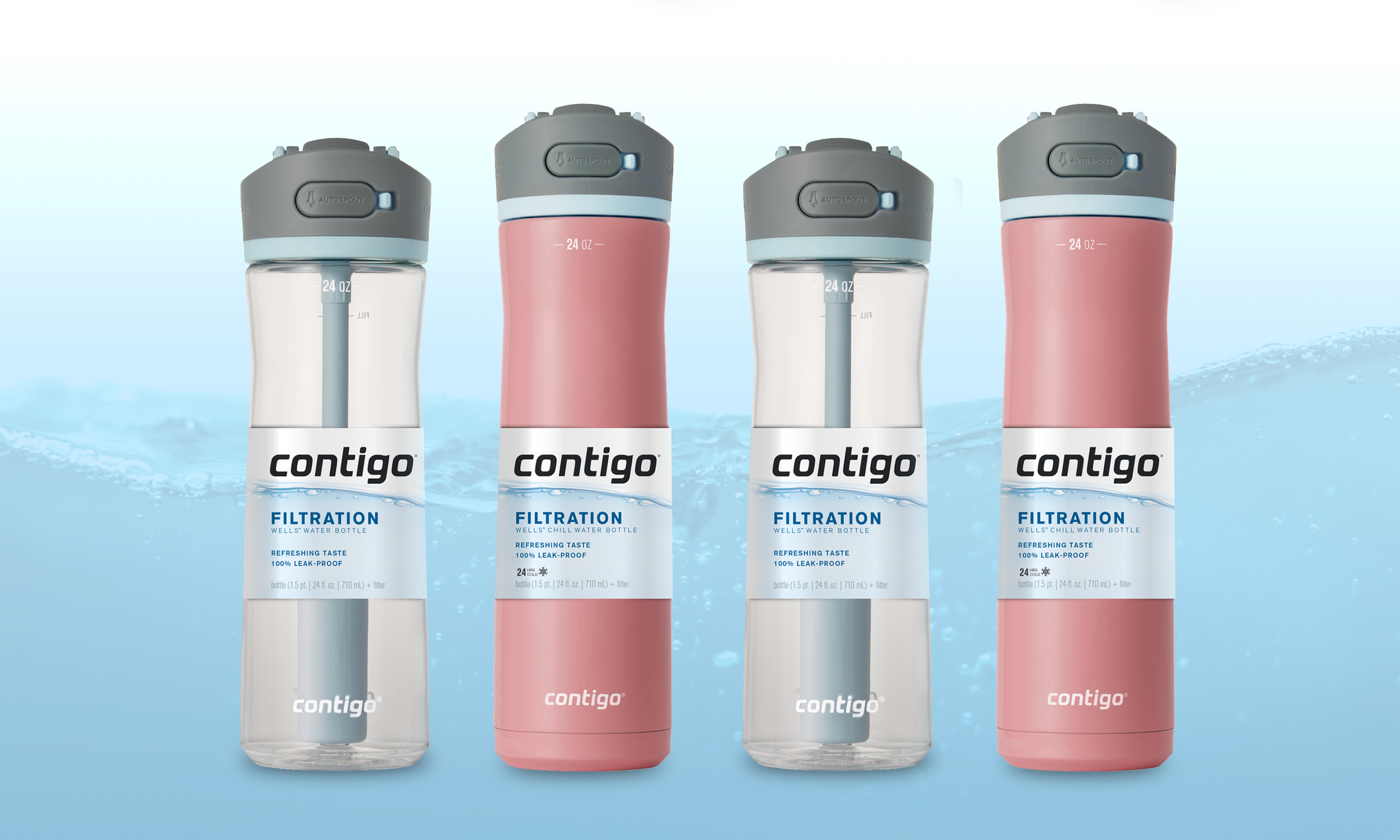 A refreshing extension of the Contigo portfolio, Filtration introduces technology that keeps every sip as pure as the last with a simple, replaceable filter accessory. As a new innovation, clear messaging throughout the design is essential to communicating the benefits and differentiation from other Contigo products.