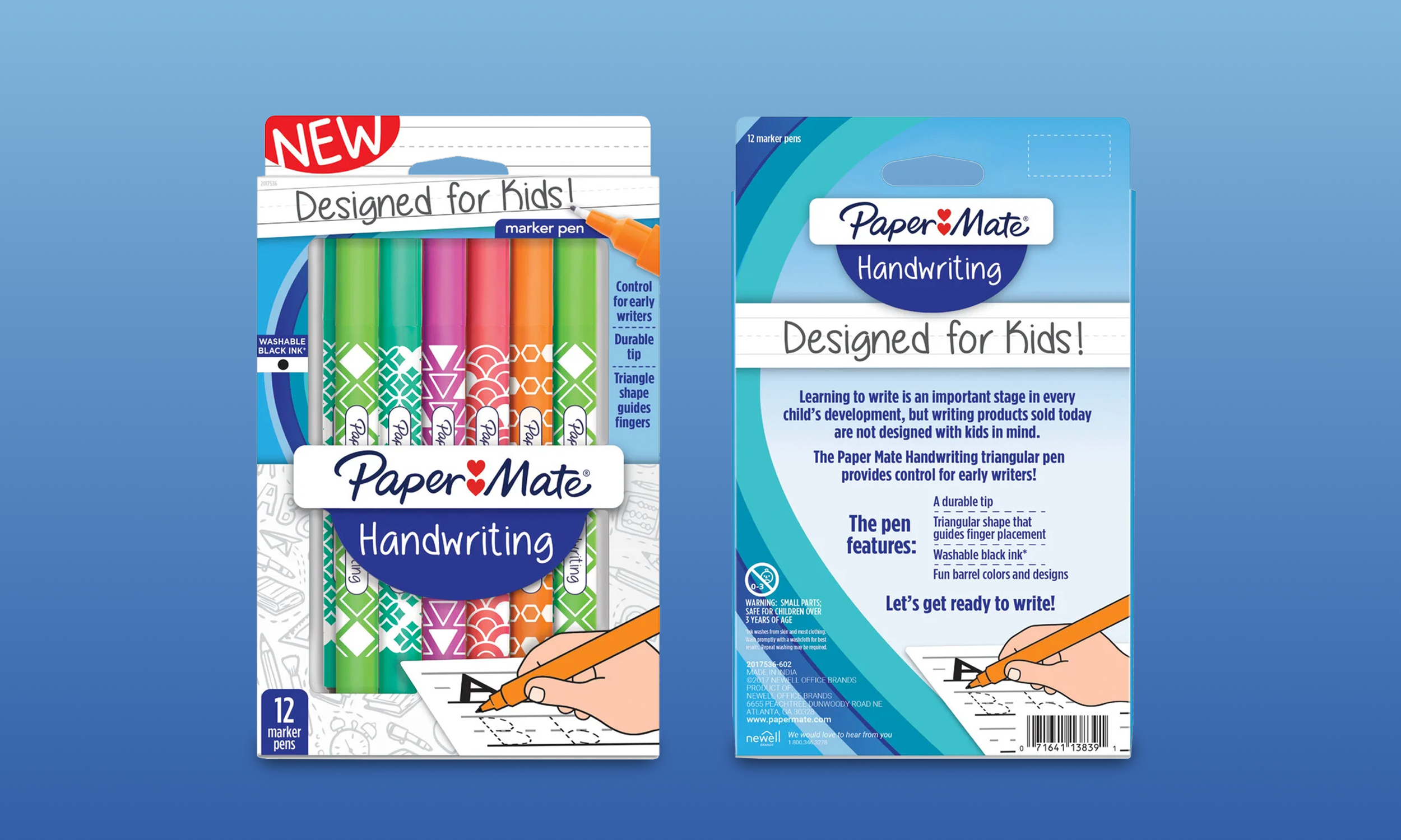 Paper Mate Handwriting products are designed to create a foundation for early writers, featuring large barrels that are easy for small hands to hold and fun patterns that bring excitement to every page.